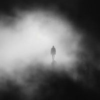 Koop dit abstracte kunstwerk Eenzame wandeling in de mist - Mystieke zwart-wit fotografie van Poster Art Shop op canvas, aluminium dibond, (ingelijste) fotoprint, behang en ArtFrame, op maat geprint in Fine-Art kwaliteit.