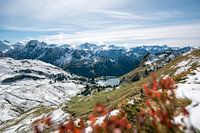 Eerste verse sneeuw in de herfst bij Seealpsee met de Allgäuer Alpen op de achtergrond