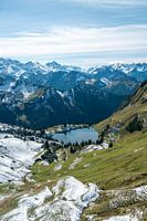 Eerste verse sneeuw in de herfst bij Seealpsee met de Allgäuer Alpen op de achtergrond