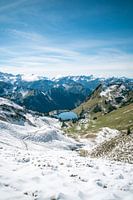 Eerste verse sneeuw in de herfst bij Seealpsee met de Allgäuer Alpen op de achtergrond