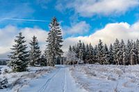 Eerste winterwandeling op de Rennsteig bij de mooiste zonsondergang - Duitsland