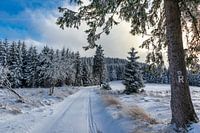 Eerste winterwandeling op de Rennsteig bij de mooiste zonsondergang - Duitsland