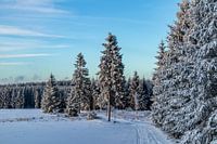 Eerste winterwandeling op de Rennsteig bij de mooiste zonsondergang - Duitsland