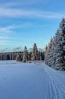 Eerste winterwandeling op de Rennsteig bij de mooiste zonsondergang - Duitsland