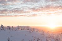 Het eerste licht, de zonsopgang in januari is pas rond 11 uur in de ochtend, raakt hier heel liefelijk de berg- en boomtoppen.