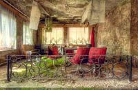 Een eet kamer in een prachtig verlaten gebouw waar natuurlijk verval is ingetreden en nog geen spoor van vandalisme is te bekennen.