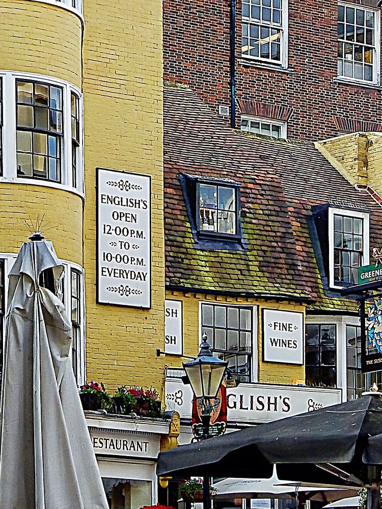 Aan de rand van The Lanes in Brighton, Engeland, bevinden zich een groot aantal restaurants, bars, cafés en pubs. Dit beeld is net bij de uitgang van de lanes en zit vol met eetgelegenheden. Er is een beroemd visrestaurant/oesterbar, restaurants, bistro's enz. Voor elk wat wils eigenlijk.