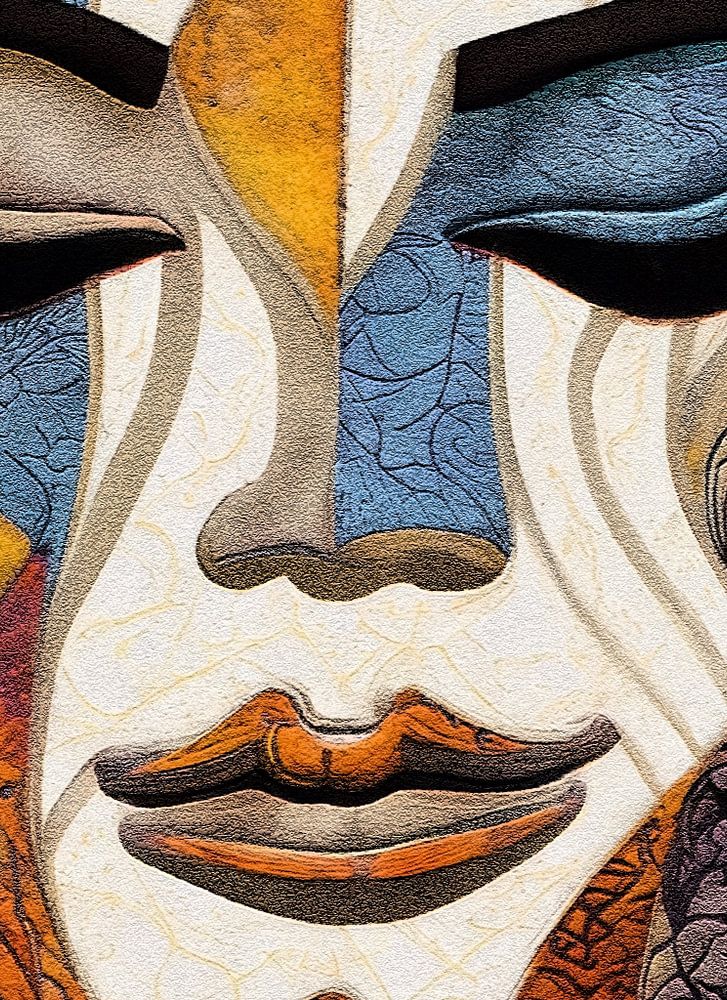 "Eeuwige Reflectie" is een fascinerend digitaal kunstwerk dat een betoverend portret van introspectie en innerlijke rust vangt. In dit meesterwerk worden abstracte vormen tot leven gebracht, waarbij het gezicht van een goddelijke entiteit centraal staat.