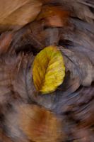 Voor dit beeld heb ik de camera tijdens het fotograferen gedraaid, waardoor je dit mooie effect krijgt. Het blad centraal in de foto is nog duidelijk te zien, terwijl de bladeren er omheen wazig zijn geworden.