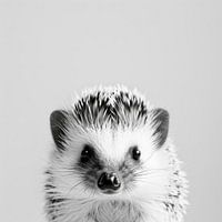 Deze betoverende zwart-witfoto legt de nieuwsgierige blik van een egel vast in een intiem portret. De duidelijke contrasten en zachte grijstinten benadrukken de fijne details en unieke persoonlijkheid van het kleine dier. Deze foto is perfect voor dierenliefhebbers en liefhebbers van fotografiekunst en geeft een warme en elegante uitstraling aan elke woon- of werkomgeving. Ideaal als blikvanger of toevoeging aan een bestaande kunstcollectie.