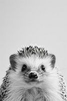 Deze betoverende zwart-witfoto legt de nieuwsgierige blik van een egel vast in een intiem portret. De duidelijke contrasten en zachte grijstinten benadrukken de fijne details en unieke persoonlijkheid van het kleine dier. Deze foto is perfect voor dierenliefhebbers en liefhebbers van fotografiekunst en geeft een warme en elegante uitstraling aan elke woon- of werkomgeving. Ideaal als blikvanger of toevoeging aan een bestaande kunstcollectie.