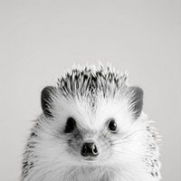 Deze betoverende zwart-witfoto legt de nieuwsgierige blik van een egel vast in een intiem portret. De duidelijke contrasten en zachte grijstinten benadrukken de fijne details en unieke persoonlijkheid van het kleine dier. Deze foto is perfect voor dierenliefhebbers en liefhebbers van fotografiekunst en geeft een warme en elegante uitstraling aan elke woon- of werkomgeving. Ideaal als blikvanger of toevoeging aan een bestaande kunstcollectie.
