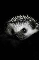 Een kleine egel met sprankelende, nieuwsgierige ogen en stekelige maar charmante stekels sluipt in beeld. Het zwart-wit contrast geeft deze foto een speciale diepte en gezelligheid. Perfect voor in de woonkamer, het straalt een vleugje natuurlijkheid en lieve speelsheid uit. Een echte blikvanger voor dierenminnende harten!