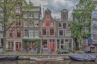 Karakteristiek beeld van de grachtenhuizen aan de Egelantiersgracht in Amsterdam.