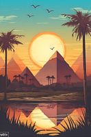 Een eigentijds kunstwerk toont de majestueuze piramides in Egypte met een moderne twist. De gedurfde lijnen en abstracte vormen geven een eigentijds en artistiek perspectief op deze iconische bouwwerken. De levendige kleuren en dynamische compositie wekken de oude geschiedenis tot leven en brengen een gevoel van tijdloze grootsheid en mysterie naar voren. Het kunstwerk eert het verleden terwijl het tegelijkertijd een eigentijdse en artistieke visie op de piramides biedt.