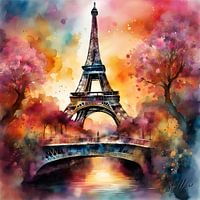 Het delicate vleugje surrealisme voegt een element van mysterie en intriges toe, terwijl de bloemen geheimen lijken te fluisteren over de geschiedenis van de stad en de passies die onder het torenhoge silhouet tot bloei zijn gekomen. "Eiffeldromen in bloemengefluister" is een visueel gedicht dat je uitnodigt om de verborgen tuinen van de verbeelding te verkennen.