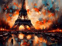 Vang de romantiek van Parijs met dit betoverende kunstwerk met de Eiffeltoren badend in de gouden tinten van de zonsondergang. Het iconische oriëntatiepunt staat hoog tegen een levendige hemel en creëert een scène van pure Parijse magie. Laat dit kunstwerk je meevoeren naar de Stad van de Liefde, waar dromen van gemaakt zijn. Dit is niet zomaar kunst; het is een uitnodiging om je over te geven aan een vleugje Franse elegantie.