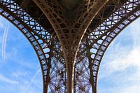 Prachtige opname van een deel van de Eiffeltoren in Parijs, Frankrijk, gezien vanaf de onderkant