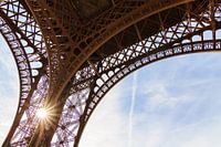 Prachtige opname van een deel van de Eiffeltoren in Parijs, Frankrijk, gezien vanaf de onderkant