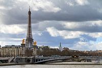 Prachtige opname van de Pont Alexandre III brug in Parijs, Frankrijk, met de Eiffeltoren op de achtergrond