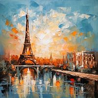 Digitaal motief van de Eiffeltoren in Parijs dat eruitziet als een schilderij.