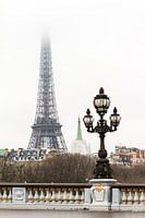 Prachtige opname van de Eiffeltoren in de mist gezien vanaf de Pont Alexandre III brug in Parijs, Frankrijk