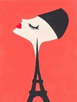 Kleurrijk schilderij illustratie van een vrouw verwerkt in de Eiffeltoren