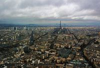 Zicht op de stad Parijs met de Eiffeltoren als baken in beeld. onmiskenbaar Frans.
