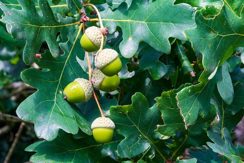 De eikels zijn de vruchten van een eikenboom. Ideaal voedsel voor verschillende dieren in het bos.