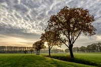 Een rij Eiken in het Vechtdal tijdens een vroege herfst ochtend.