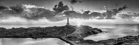 * Lightshouse Clouds * Black & White Landscape. Prachtige kust van het eiland Menorca in de Middellandse Zee met vuurtoren Favaritx voor een prachtig kustlandschap in het warme ochtendlicht.