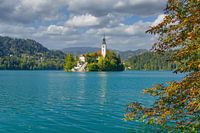 Koop de foto Eiland in het meer met de St. Mary's kerk in het meer van Bled van Peter Eckert als print op canvas, aluminium dibond, (ingelijste) fotoprint, behang en ArtFrame. Voor jou op maat geprint in Fine-Art kwaliteit.