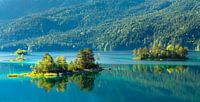 Eilanden in de Eibsee in de zomer, Beieren, Duitsland
