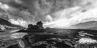 Zwart-wit foto Eilean Donan Castle in Loch Duich in de Schotse Hooglanden.