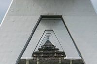 Eindeloos perspectief tussen de betonnen pijlers van de Zeelandbrug. Soort van tunnel van driehoek vormen.