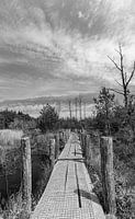 Het plankenpad in het Dwingelderveld in zwart wit