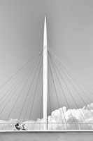 De Hovenring rotonde is een fietsbrug die met tuikabels aan een 70 meter hoge pyloon is opgehangen.