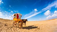 Ein einsames Pferd mit Kutsche in der ägyptischen Wüste