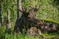 Deze eland ligt lekker in de zon in het Polar park, het noordelijkste wild life park van de wereld in het noorden van Noorwegen.
