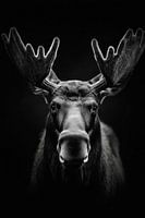 Een majestueuze eland met zijn imposante gewei die in het diepst van je ziel kijkt, wekt een gevoel van avontuur en verbondenheid met de natuur op. De contrastrijke zwart-witafbeelding geeft de afbeelding een tijdloze elegantie. Perfect voor in de woonkamer, creëert het een spannende gesprekssfeer en brengt het een vleugje wildernis in je huis.