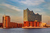 De Elbphilharmonie in de haven van Hamburg in het avondlicht.