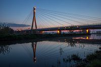 Elbe-brug Niederwartha in Dresden in de blauwe uren van de meimorgen.