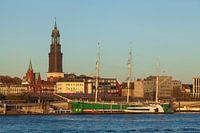 Elbe met Michel en Rickmer Rickmers, Hamburg van Torsten Krüger