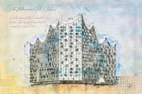 Architectuurschets uit een serie tekeningen van de mooiste en beroemdste gebouwen ter wereld. Gemaakt met potlood en aquarel op papier.