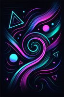 Deze moderne digitale poster betovert de kijker meteen: krachtige neonkleuren in paars, turquoise en blauw dansen over de diepzwarte achtergrond en vormen gebogen lijnen, spiralen en geometrische figuren zoals driehoeken en cirkels. Het resultaat is een samenspel van beweging, ritme en futuristische elegantie - een motief dat tegelijk hypnotiserend, dynamisch en inspirerend is.