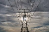 Een electriciteitsmast in het zuiden van de provincie Friesland met een halo op de achtergrond, goed zichtbaar door de sluierbewolking