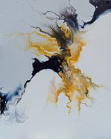 In dit schilderij van acrylverf op canvas, uitgevoerd in de Fluid Art-techniek vloeien sierlijke en onstuimige vormen over het canvas.