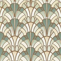 "Elegant Art Deco Motief" is een elegant patroon met de kleuren groen en creme. Het werk is voor de liefhebbers van de twintiger jaren. Hang het op in je woonkamer, slaapkamer of kantoor om een vleugje glamour en verfijning toe te voegen aan elke ruimte.