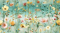 Deze behangcreatie is een waar kunstwerk op zich. Een weelderig landschap van bloemen ontvouwt zich in zachte pasteltinten, afgewisseld met speelse roze accenten die het geheel tot leven brengen.