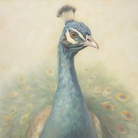 Een kleurrijk digitaal schilderij van een elegante pauw. Het werk geeft een dromerige en klassieke uitstraling aan uw interieur!